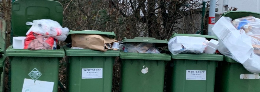Nach den Feiertagen ist es besonders hart, wenn die AbfuhrTermine sich verschieben. Aber morgen sind die grünen Tonnen dran. Also nicht vergessen: am besten noch heute Abend rausstellen oder morgen in der Frühe.