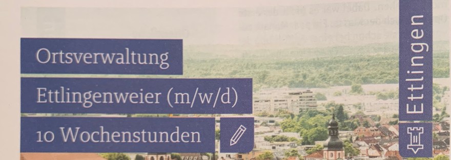 FREIE STELLE Februar 7, 2020 weierbloggt Wie im letzten Amtsblatt zu lesen war, sucht die Stadt für unsere Ortsverwaltung eineN neueN SachbearbeiterIn. Die Stelle ist für 10 Wochenstunden ausgeschrieben. Das wäre doch was für eineN WiedereinsteigerIn?! Teilen mit: Klicke, um auf X zu teilen (Wird in neuem Fenster geöffnet) X Klick, um auf Facebook zu teilen (Wird in neuem Fenster geöffnet) Facebook Gefällt mir Wird geladen … Ähnliche Beiträge Veröffentlicht von weierbloggt Zeige alle Beiträge von weierbloggt
