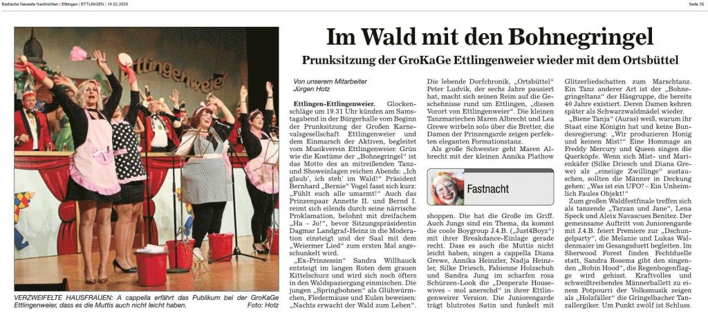 Am Samstag war die erste Prunksitzung der GroKaGe in der Bürgerhalle. Ein buntes Programm begeisterte die Zuschauer, die durchweg mit phantasievollen Kostümen gekommen waren. Bernie und Daggi führten durch zackige Gardetänze, Weirer Büttenreden, professionelle Gesangseinlagen, perfekte Showtänze und noch vieles mehr. Den Einmarsch besorgte der Musikverein und der Fussballverein übernahm die Bewirtung. So geht Dorf! Auf ein Neues am nächsten Samstag! Ha-Jo Ha-Jo Ha-Jo