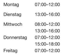 Lieferservice bei Bestellung bis 16 Uhr, Abholservice bei telefonischer Vorbestellung und normaler Einkauf während den Öffnungszeiten: Mo bis Fr 9-12:30 Uhr und 14 bis 18 Uhr, Samstag 9 bis 13 Uhr