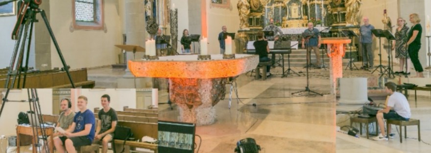 Letzten Samstag wurde unsere wunderbare Barock-Kirche St. Dionysius kurzerhand in ein Film- und Tonstudio verwandelt. Anlass war die Aufzeichnung eines Online-„Mut-Mach-Gottesdienstes“, der kommenden Sonntag, 19. Juli 2020 ab 11:00 Uhr über die Homepage https://kath-ettlingen-land.de/ auf dem YouTube-Kanal der Seelsorgeeinheit empfangen werden kann. Die Aufarbeitung der Pandemie wird musikalisch begleitet vom „EBO-Chörchen“, der ein kleines Liedheft zum Download bereitstellt und zum kräftigen Mitsingen vor den heimischen TV-Geräten einlädt.