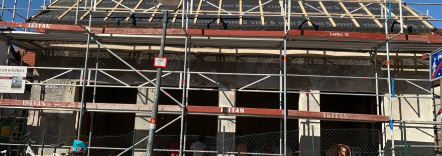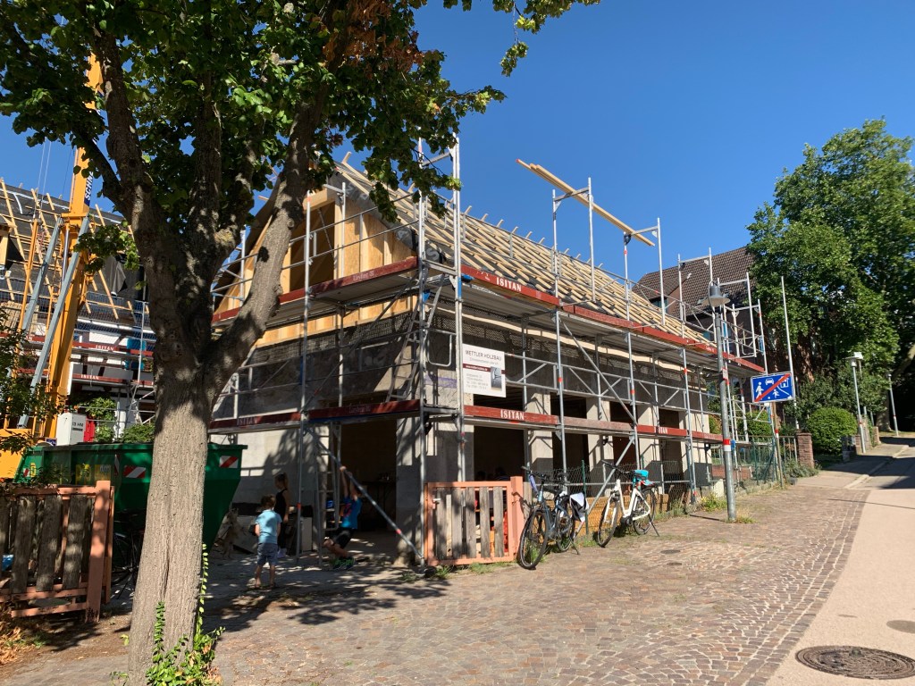 Heute war Richtfest im zukünftigen Cafe neben der Kirche (ehemals Modellbauschreinerei Lumpp). In einem Jahr soll es so weit sein. Marion und Berthold Zähringer haben schon mal verraten, dass zur Straße hin bodentiefe Türen/Fenster das Licht herein lassen werden. Davor wird es eine Mauer zum „Noasitze und Schwätze“ geben. Aber natürlich wird auch ein Außenbereich mit Bewirtung nicht vergessen. Wir sind schon arg gespannt und werden immer mal wieder „spickle“ und berichten.