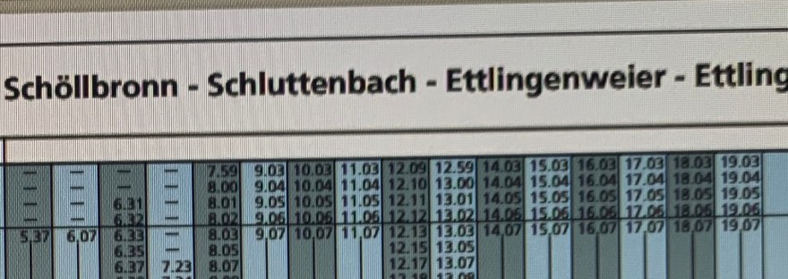 Den Busfahrplan gibt‘s unter http://www.kvv.de/fahrplan/fahrpläne/fahrplantabelle.html