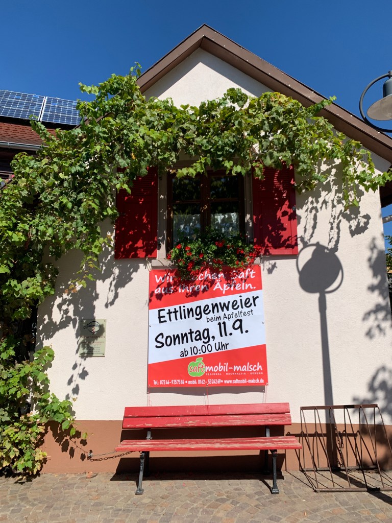 Das Saftmobil wird im Bereich Kirche/Ettlinger Straße/ Georg-Blasel-Straße stehen. Eine Anlieferung der Äpfel mit dem Auto ist also möglich. Dennoch wird der Bereich ansonsten abgesperrt werden.