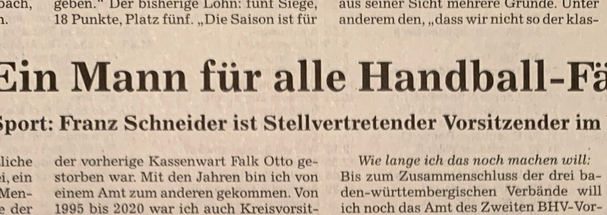 FRANZ SCHNEIDER IM BNN INTERVIEW September 30, 2022 weierbloggt In der Serie Leben für den Verein ist heute ein interessantes Interview in der Rubrik Sport Lokal mit Franz Schneider, stellv. Vorsitzender im badischen Handball Verband zu lesen 📰 Teilen mit: Klicke, um auf X zu teilen (Wird in neuem Fenster geöffnet) X Klick, um auf Facebook zu teilen (Wird in neuem Fenster geöffnet) Facebook Gefällt mir Wird geladen … Ähnliche Beiträge Veröffentlicht von weierbloggt Zeige alle Beiträge von weierbloggt