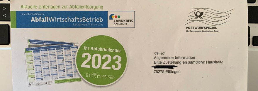 ABFUHRKALENDER 2023 November 10, 2022 weierbloggt Achtung! Der Abfuhrkalender 2023 wird schon per Post versandt. Wir dachten erst, es ist Werbung und wollten den Brief schon entsorgen….. Also nachsehen und aufbewahren Teilen mit: Klicke, um auf X zu teilen (Wird in neuem Fenster geöffnet) X Klick, um auf Facebook zu teilen (Wird in neuem Fenster geöffnet) Facebook Gefällt mir Wird geladen … Ähnliche Beiträge Veröffentlicht von weierbloggt Zeige alle Beiträge von weierbloggt