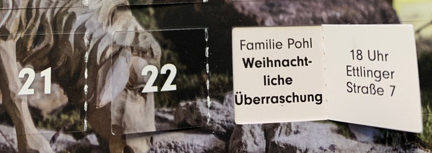 ADVENTSHÖFE Dezember 23, 2022 weierbloggt Traditionell wird heute um 18 Uhr Familie Pohl die Adventshofreihe beschliessen.Wir lassen uns in der Ettlinger Str. 7 mit vielen Weihnachtsliedern überraschen. Teilen mit: Klicke, um auf X zu teilen (Wird in neuem Fenster geöffnet) X Klick, um auf Facebook zu teilen (Wird in neuem Fenster geöffnet) Facebook Gefällt mir Wird geladen … Ähnliche Beiträge Veröffentlicht von weierbloggt Zeige alle Beiträge von weierbloggt