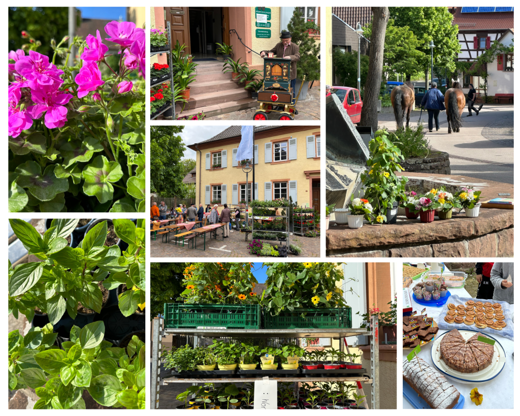 Um 9 Uhr ging‘s los. Die Dorfzeit Initiative, Jürgen Poxleitner von worKA und der Förderverein der Grundschule trafen sich zum Aufbau. Und wo viele Hände zupacken war es dann auch schnell geschafft. Ab halb zehn kamen schon die ersten Kunden vorbei und kauften Tomaten- und Salatsetzlinge, Kräuter, Balkonpflanzen und Muttertagssträußchen. Bei Kuchen oder Vesper mit Bier oder auch Cidre machte das dörfliche Ambiente viel Spaß. Für das i-Tüpfelchen sorgte dann noch unser Schwarzwälder Drehorgler Alois Fleig. Alles passte. Danke an alle Besucher und alle, die mitgemacht haben. Nächstes Jahr gerne wieder 🪴