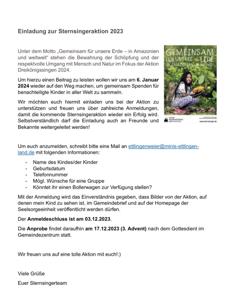 STERNSINGERAKTION 2024 November 22, 2023 weierbloggt Teilen mit: Auf X teilen (Wird in neuem Fenster geöffnet) X Auf Facebook teilen (Wird in neuem Fenster geöffnet) Facebook Gefällt mir Wird geladen … Ähnliche Beiträge Veröffentlicht von weierbloggt Zeige alle Beiträge von weierbloggt