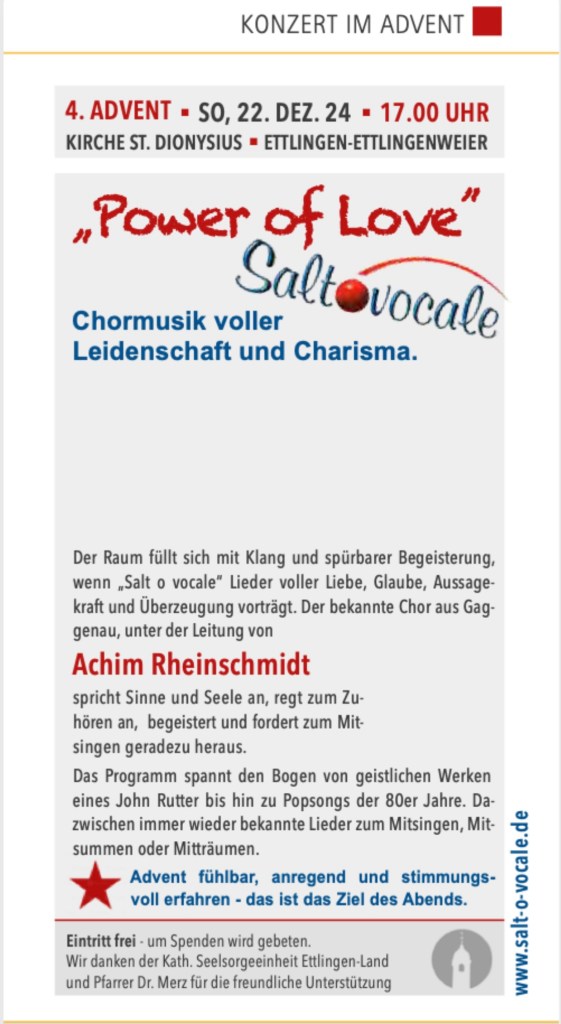 Der Förderverein des Hospiz Arista veranstaltet heute um 17 Uhr in der Kirche Chormusik Power of Love: