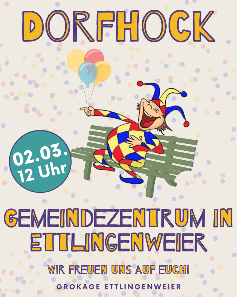 Am kommenden Sonntag ist es wieder soweit: im Gemeindezentrum lädt die GroKaGe nach der Narrenmesse (11 Uhr) ab 12 Uhr zur närrischen Dorfhock mit vielen Beiträgen (auch mit dem Weirer Dorfkind 😉), flotten Rhythmen und natürlich auch reichlich Leckerem zum Essen und Trinken.