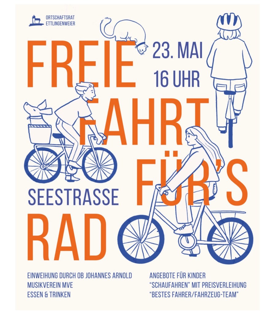 Am Freitag, 23.5. 16 Uhr wird der neue Abschnitt FAHRRADSTRASSE offiziell durch Herrn OB Johannes Arnold eingeweiht. Anschließend gibt’s ein Straßenfest und zwar wegen des Busverkehrs zwischen der Kreuzung Heckenweg und Einmündung Kirchenweg.